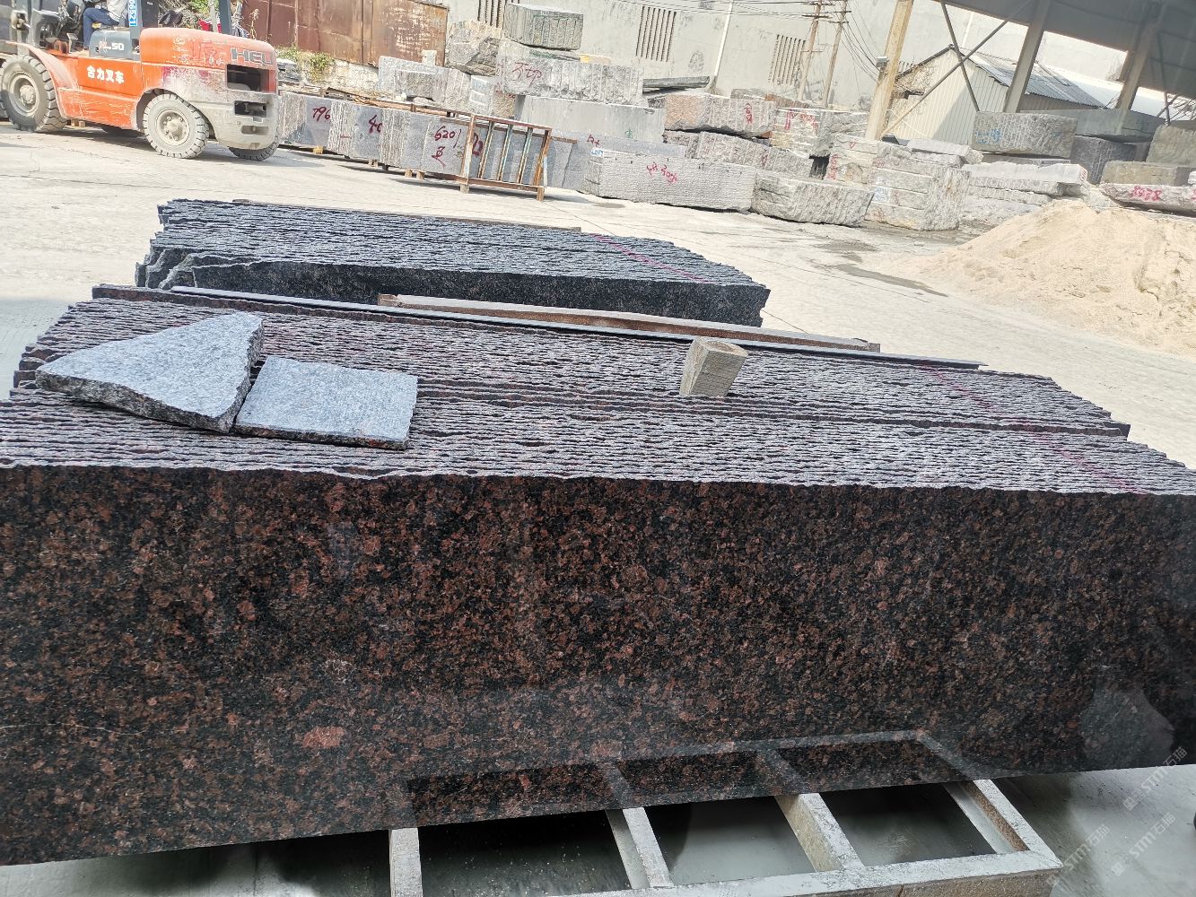 專業(yè)從事進(jìn)口花崗巖荒料,板材的生產(chǎn),加工,銷售為一體的石材公司.公司擁有9臺(tái)大切機(jī),月產(chǎn)量50000平方米。
