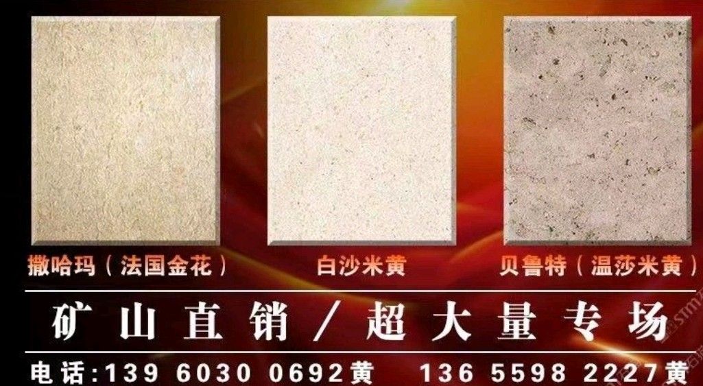 貝魯特/溫莎米黃,工程外墻干掛? 定發(fā)礦、白底礦山直銷超20萬平方現(xiàn)貨???? 撒哈瑪/法國金花,室內(nèi)外材料?? 葡萄牙米黃/葡米,超大量供應商?? 新西米/埃米,超白底礦山直銷?? 云朵拉灰,專為工程而打造,超性價比 白沙米黃/中細沙,室內(nèi)外材料?? 令每個工程交付,做到驗收無憂???? (質與量的保障者、經(jīng)得起層層考驗)???? 全球供應商,各大地產(chǎn)指定供應商? 承接國內(nèi)外室內(nèi)外石材工程訂單???? 致富專線:13960300692黃