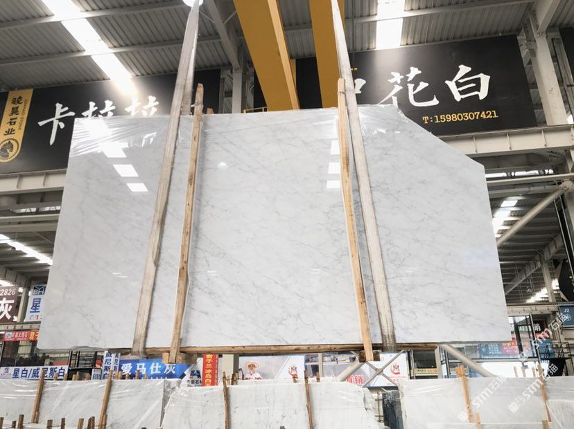 大量精品中花白、卡拉拉白、雪花白大板、荒料