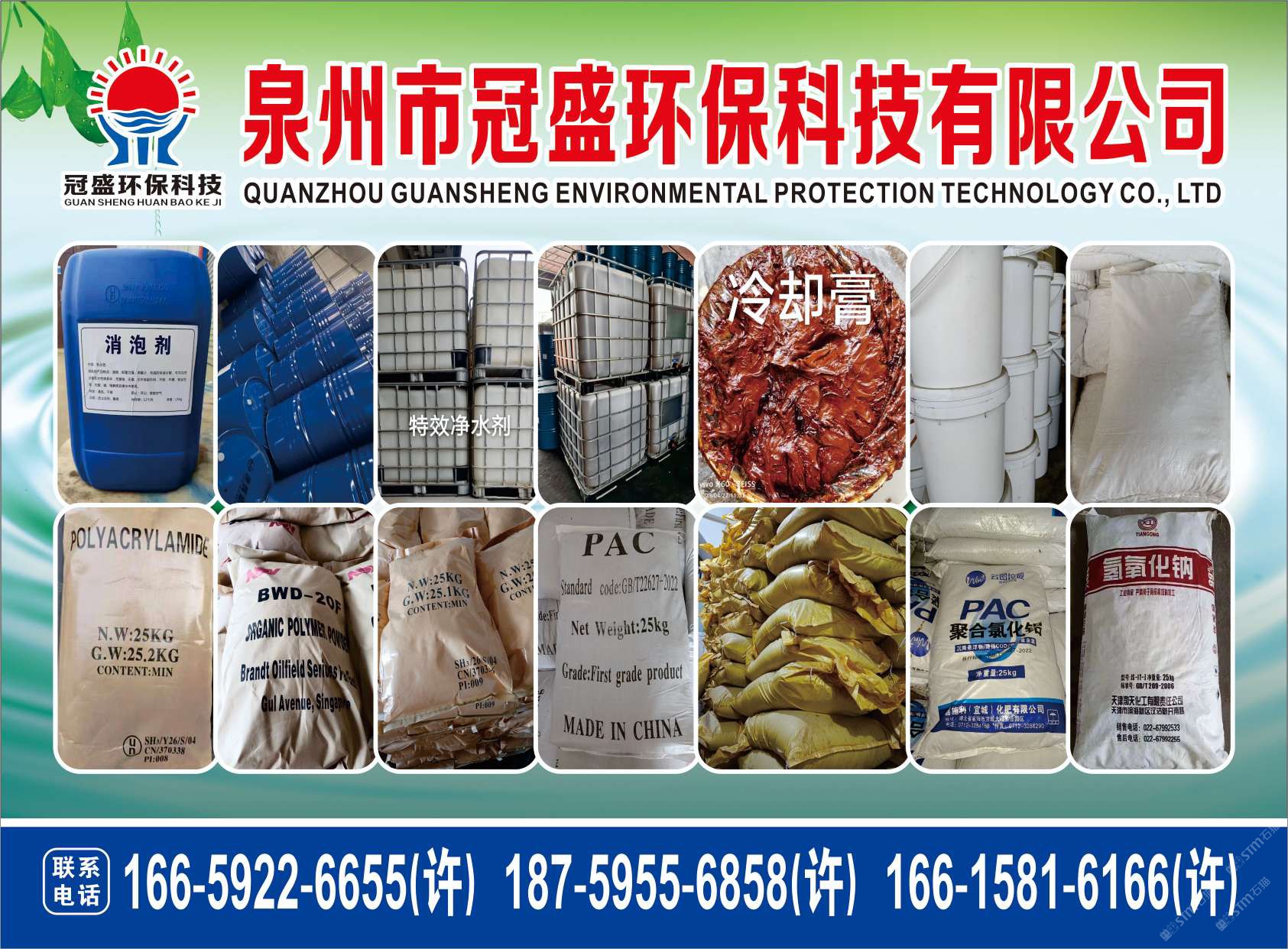 主營產(chǎn)品:凈水劑,冷卻劑,冷卻粉,大理石人造石專用凈水劑,沉淀粉,消泡劑,消毒凈水劑,防銹凈水劑,除銹劑,除臭劑,聚丙烯酰胺,聚合氯化鋁,鹵精,洗沙專用凈水劑,壓濾機專用凈水劑,陶瓷廠專用凈水劑(黃藥 白藥)等所有水處理環(huán)保材料……