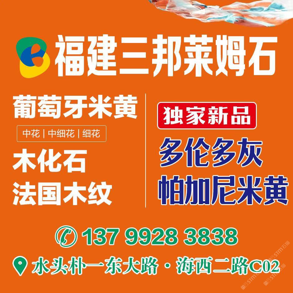 福建三邦【萊姆石】石業(yè) 葡萄牙米黃,木化石,月光米黃,貝金米黃,白沙米黃,香貝米黃,沉香米黃,維納多米黃 專業(yè)萊姆石【荒料、大板、成品、異形、線條】 一條龍服務(wù) 工廠:水頭樸一東大路, 市場(chǎng):海西市場(chǎng)二路C2, 電話13799283838/13799285858