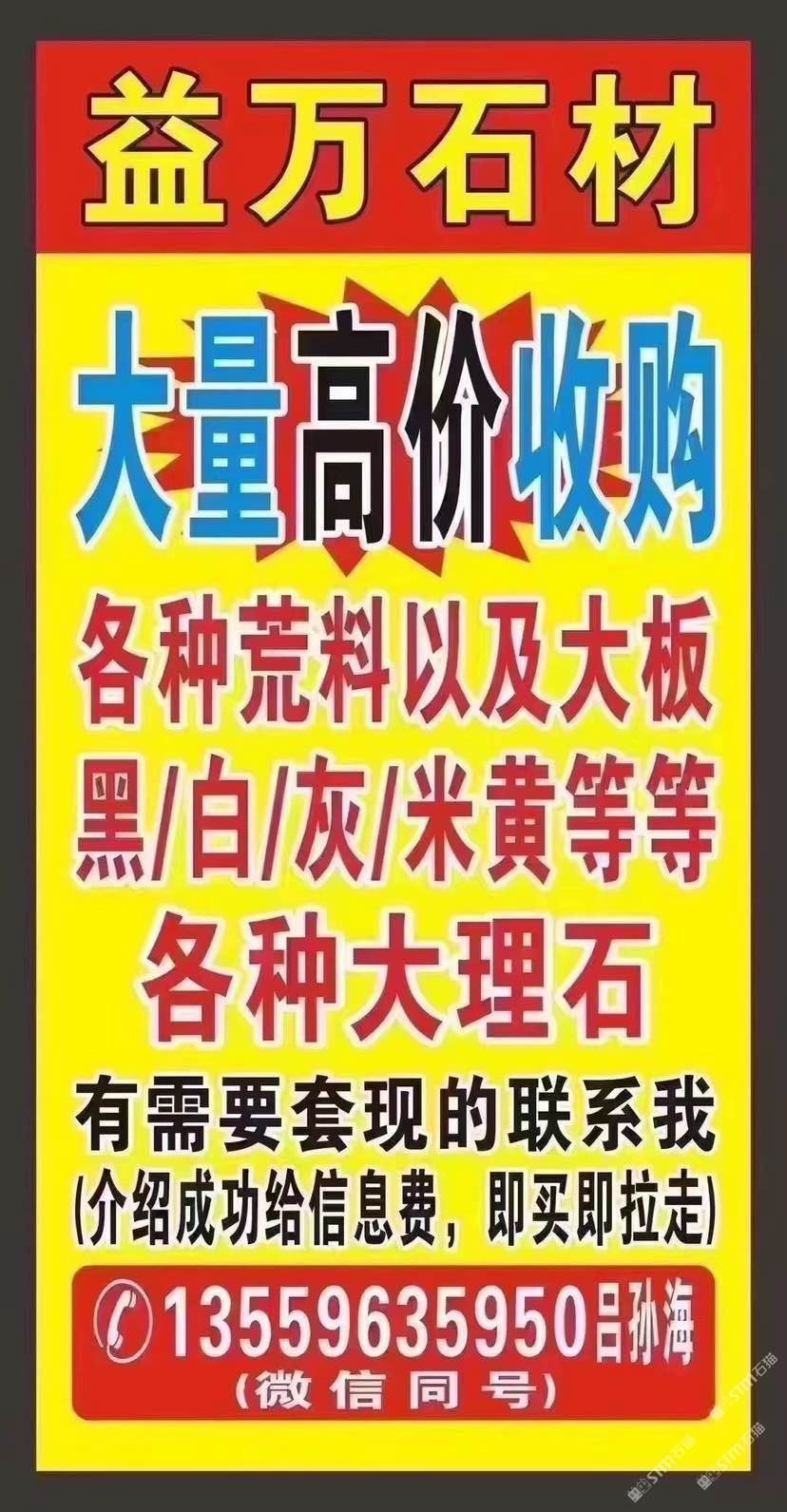 `【長期大量??高價(jià)求購】大板,荒料,多少量都可以;云多拉灰,奧特曼,白玉蘭,南斯拉夫白,溫德姆灰,星耀灰,保加利亞灰,奢石等各種大理石;需要:套現(xiàn)、清倉、換品種的速來,介紹成功給信息費(fèi),現(xiàn)收現(xiàn)拉!微信:13559635950呂孫海微信同號(hào)