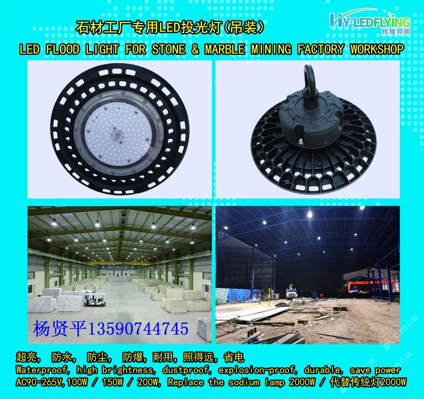 發(fā)布信息: 石材工廠和車間專用led投光燈,200瓦led可以代替3000瓦傳統(tǒng)燈,節(jié)能省電,質(zhì)保3-5年,防水,防爆,防塵,高亮度,楊賢平13590744745