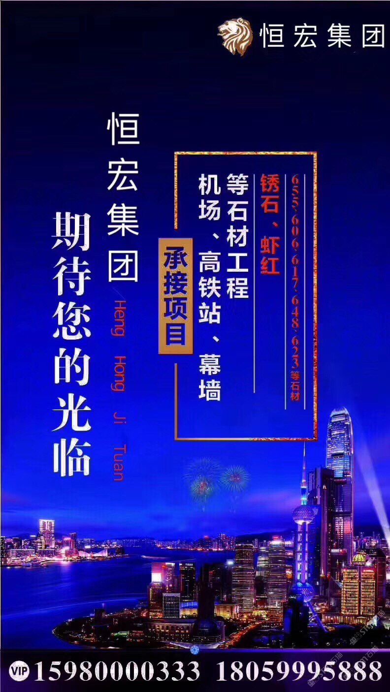 發(fā)布信息: 【恒宏建材有限公司】主營:銹石、蝦紅、珍珠白、602#、603#、623#、654#、655#、617#、648#、白麻、灰麻、銀河灰、虎皮黃、虎皮紅、虎皮白、英國棕、皇室香檳、閃電米黃、白玉蘭、奧特曼、云多拉灰、塞浦路斯灰等國內(nèi)外花崗巖、大理石,護(hù)欄欄桿、異形?? 電話: 15980000333張(花崗巖) 18059995888洪(大理石)