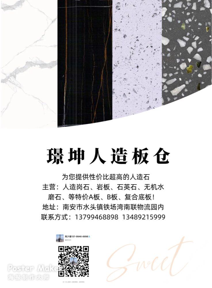 地址:南安市水頭鎮(zhèn)鐵場灣南聯(lián)停車場內(nèi)(華置石業(yè)斜對(duì)面)#璟坤人造板倉##璟坤石業(yè)專注:別墅,會(huì)所,酒店等室內(nèi)外精裝石材#