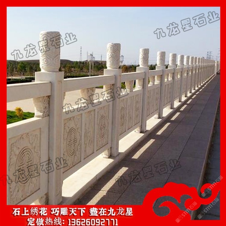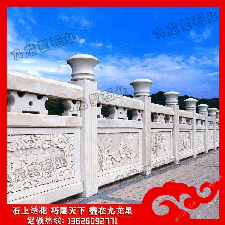 發(fā)布信息: 高速公路石雕護(hù)欄 花崗石欄桿加工廠家——九龍星石業(yè)。 花崗石欄桿加工廠家在設(shè)計(jì)的時(shí)候要規(guī)定尺寸,花崗巖石材的尺寸和規(guī)模決定了它的價(jià)格標(biāo)準(zhǔn) ,石欄桿廠家在加工欄桿的時(shí)候根據(jù)尺寸大小確定好花崗巖石欄桿的形狀,再將花崗 巖石欄桿制成不同的造型,這些造型目前可以分為歐式的、連續(xù)式的、寶瓶式的、簡(jiǎn) 易式的等等、這些造型可以的多樣性可以適用于任何場(chǎng)所中。 高速公路石雕護(hù)欄的制作造型采用橫檔以及花飾,石欄桿安裝的場(chǎng)所一般在河邊,護(hù)城河使用量 大,石欄桿制作雕刻亮點(diǎn)在于立桿的設(shè)計(jì),立桿的制作可以柱子成寶瓶柱或者花瓶柱 ,欄桿的制作根據(jù)不同地方的應(yīng)用在雕刻制作上的樣式上也不同。石欄桿的安裝在各 大建筑領(lǐng)域中應(yīng)用也很多,會(huì)有局部的鏤空形式,這種制作造型的石欄桿在景觀橋上 的使用頻率較多。 石雕欄桿作為橋上的扶手,主要是承擔(dān)兩個(gè)作用,一是便于游客手扶,二是防止行人 或者是機(jī)動(dòng)車墜入橋下,因?yàn)樗淖饔盟詮S家在制作的時(shí)候要按照對(duì)應(yīng)要求來(lái)進(jìn)行 制作。因?yàn)槿藗冏咴跇蛏系臅r(shí)候會(huì)手扶石雕欄桿,所以這就要求欄桿的表面要打磨的 相對(duì)舒適。