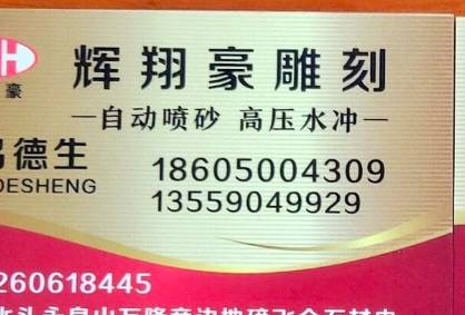 輝翔豪噴砂水沖 聯(lián)系人:呂先生    186****4309 查看 186****4309 查看 主營(yíng)范圍: 石材雕刻、碑石加工、石材輔料及特殊工藝、更多、 企業(yè)地址:福建南安水頭樸山工業(yè)區(qū)飛眾石材內(nèi)2號(hào)門(mén)