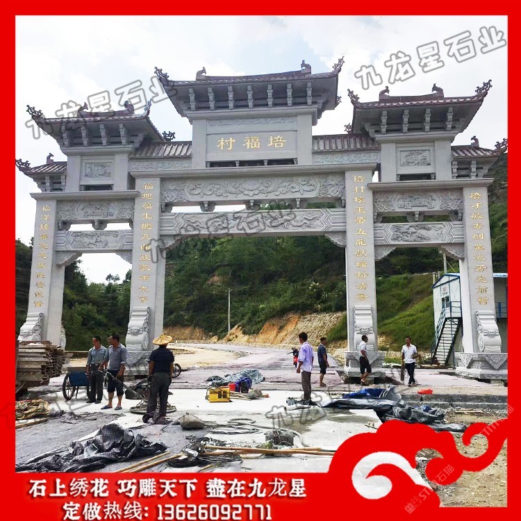 發(fā)布信息: 農(nóng)村村口牌坊 石牌坊生產(chǎn)廠家——九龍星石業(yè)。 農(nóng)村村口牌坊制作內(nèi)容豐富,雕刻精美,每一座石牌坊都瑰麗華美,都是經(jīng)過(guò)石牌坊雕刻廠家精雕細(xì)刻加工而成的。 從農(nóng)村村口牌坊設(shè)計(jì)來(lái)看,規(guī)格主要可以分為單門牌坊、三門牌坊、五門牌坊等,在樣式上可以考慮沖天式牌坊或者不出頭式牌坊。此外石牌坊本身的雕刻圖案選擇也非常多,根據(jù)當(dāng)?shù)氐娘L(fēng)土人情以及文化特色等,在牌坊的設(shè)計(jì)上都會(huì)有很大的不同,考慮村莊石牌坊多少錢,也會(huì)考慮到牌坊本身的工藝設(shè)計(jì)以及雕刻的精細(xì)度情況,做工越是精致牌坊的價(jià)格越高,做工要是普通的話相對(duì)來(lái)說(shuō)也就不需要那么多錢。