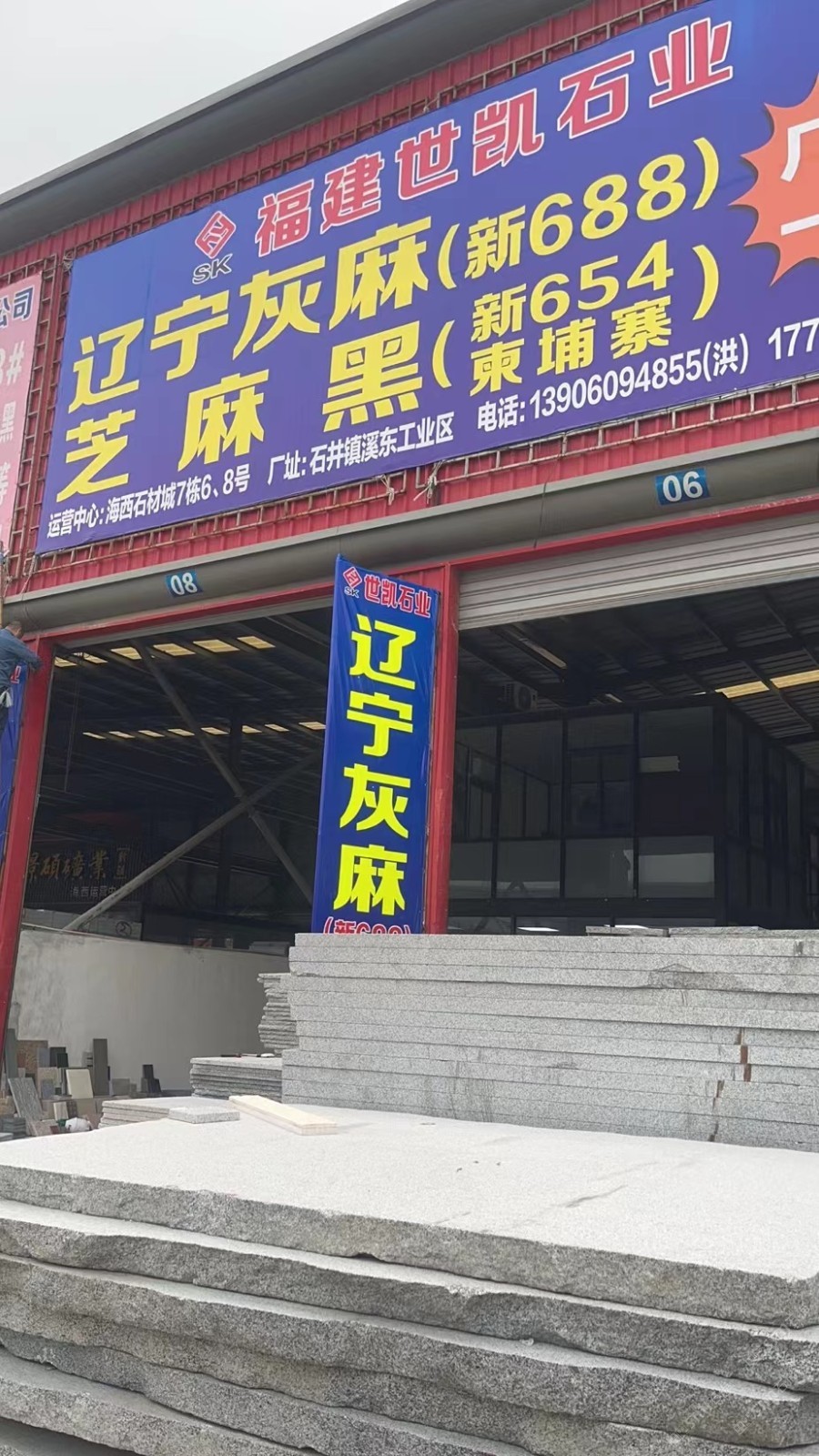 福建世凱石業(yè) 聯(lián)系人:洪先生    139****4855 查看 手機(jī)號(hào)碼:無 主營(yíng)范圍: 大板批發(fā)、荒料、花崗巖加工、異型加工、礦山、 企業(yè)地址:福建泉州南安市水頭鎮(zhèn)海西石材城花崗巖7棟6-8號(hào)