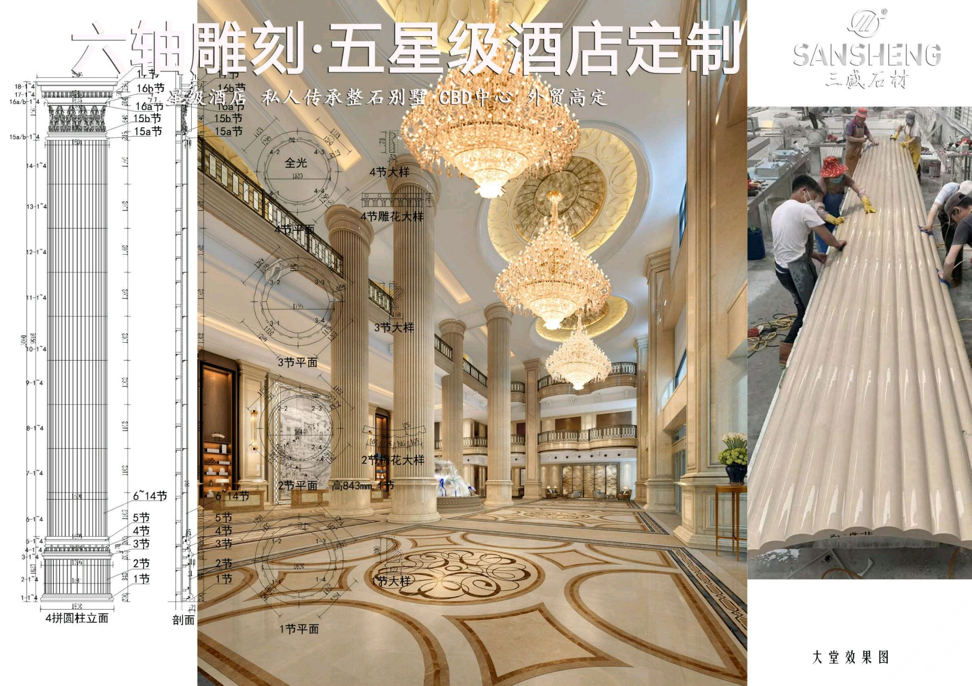 發(fā)布信息: 聯(lián)系:13489555666 黃 三盛集團(tuán)丨三盛圓柱主營(yíng):魚(yú)肚白、中花白、雅士白、大花白、卡拉拉白、雪花白、南斯拉夫白、細(xì)花白、爵士白品種的圓柱、弧形板、羅馬柱、雕刻、線(xiàn)條、旋轉(zhuǎn)樓梯、吧臺(tái)水景沙盤(pán)、整棟傳承大厝、別墅,來(lái)料智能掃描加工。