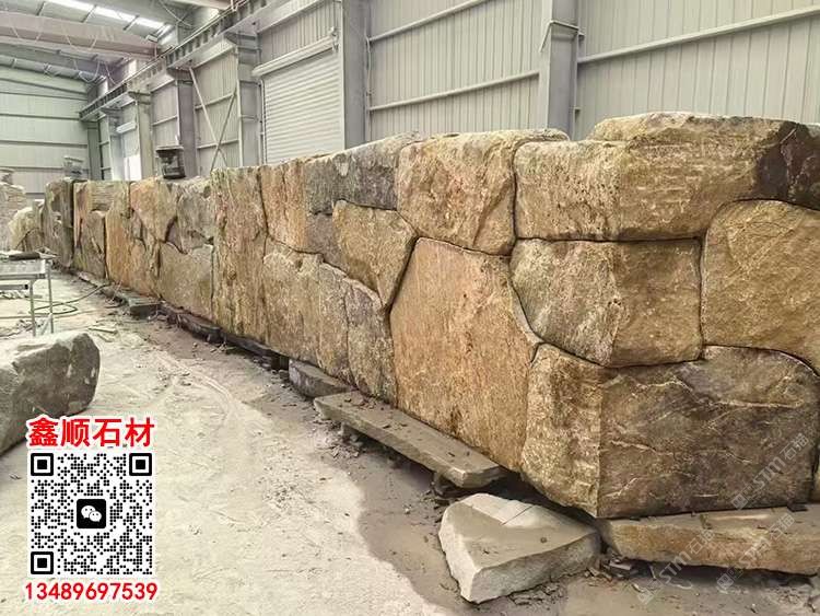 黃銹石壘墻石亂形石板不規(guī)則壘墻護坡毛石鄉(xiāng)村砌墻石材