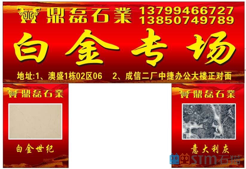 發(fā)布信息: 鼎磊石業(yè)【白金專場】不求賺錢、只求人氣、交友、歡迎大家前來參關(guān)喝茶。 地址:成信二廠中捷辦公大樓正對面(白金專場)。 電話:13850749789