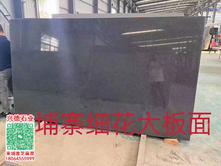 柬埔寨細(xì)花大板面金礦654芝麻黑光面臺(tái)面板柬埔寨黑