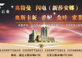 海岸全球石材精品市場主營產(chǎn)品:白玫瑰,翡翠白玉3,香妃米黃2,西班牙米黃,諾娃米黃,流金啡,冰花玫瑰,英格米黃,云多拉灰14,拉菲米黃,翡翠白玉4,靜雅灰(莎士比亞灰),白玉蘭,奧特曼,月光米黃,西班牙米黃(SP礦),西班牙米黃(老礦),蝴蝶米黃1,藍朵灰,銀河星云,鉑金藍天,安卡拉白,杜卡迪,意大利木紋,灰太狼,玉貝殼,巴賽灰,新古堡灰,貝利斯灰,夢幻灰,侏羅紀(jì)灰,藍木紋,瑪莎拉蒂灰,水墨年華,銀河藍,伊麗莎白2,白富美,白金沙,水芙蓮白,高爾灰,天之藍,冰玉,雅典木紋,紅龍玉,黑龍玉,桔子玉,瑪瑙玉,意大利藍金沙,新藍貝露,意大利白金沙,灰金沙,藍金沙,藍貝魯,海天一色,現(xiàn)代木紋,羊脂白,羊脂白玉,水云紗,清水玉,英倫玉,皇家白玉,玫瑰冰玉,魔幻白,威尼斯棕,南斯拉夫白,東方白,丹巴玉,亞馬遜灰,直紋白玉,漢白玉,東方金玉,水墨風(fēng)情,紫羅蘭5,山水畫,雅士白,爵士白,威尼斯金,梵高灰,云朵拉灰,翡翠白玉,香妃米黃,云多拉灰,蝴蝶米黃,意大利銀灰洞,連卡佛洞,奧巴馬木紋,水云澗(愛奧尼灰),柏斯高灰,意大利羅馬洞石,意大利象牙羅馬洞,鉆石流星,黃金海岸,土豪金,魚肚金,古青玉,莎安娜米黃,莎安娜,雅典黑金花,海韻灰,維納灰網(wǎng),北極光(巴圖礦),北極光4,卡西米灰,鳳尾蘭(藍寶灰),藍寶灰,藍寶灰(愛琴?;遥?比薩灰1,比薩灰A礦,湖南黑白根,湖北黑白根,黑白根,意大利灰19,新古堡灰6,夢幻灰8,意大利灰25,意大利灰(多根),藍木紋6,瑪莎拉蒂灰(國產(chǎn)),伊麗莎白4,白富美1,高爾灰(直紋),瑪瑙玉4,藍金沙2,藍金沙(灰金沙),藍金沙木紋(直紋),意大利藍金沙1,藍貝魯1,魚肚金1,意大利白金沙1,清水玉(新礦),玫瑰冰玉(大理石),山水畫1,山水畫4,山水畫11,山水畫9,水墨丹青3,古青玉(深色),新古堡灰(新礦),柏斯高灰5,亞馬遜灰1,布朗灰3,直紋白玉4,漢白玉1,莎安娜(老礦),山水畫6,威尼斯金2,梵高灰3,云朵拉灰(onur礦),柏斯高灰(意大利),黃金海岸(磨光),土豪金1,山水畫10,精品山水畫,阿斯丁白,卡拉卡塔金,土耳其灰10,嫦娥米黃,青玉,古青玉1,西米白玉,黑玫瑰,夢幻黑,世紀(jì)黑冰花,勞倫黑金,莎安娜(新礦),新帝王米黃,新帝王1,紅線莎安娜米黃,奧斯卡灰,意大利山水畫,貴族米黃,新帝王(小根),黃金米黃,北極奇光,白海棠,新林肯米黃,阿娃米黃,白金米黃,新世紀(jì)米黃3,突尼斯米黃,古都灰,巴巴羅薩,卡地亞,卡地亞2,卡地亞灰,羅薩米黃,卡地亞灰8,川普木紋1,啡慕斯,希臘灰,希臘灰(奧斯卡灰),愛馬仕灰(淺藍底),銀白龍,黑玉髓,普羅旺斯,薩日拉1,薩凡藍,艾利根,歐洞石,高爾灰2,皇家金啡(啡慕斯)1,冰花玉,松香玉(冰花玉),沉香米黃,古典米黃,卡布奇諾2,卡布奇諾1,卡布奇諾(網(wǎng)狀),閃電米黃,新莎安娜(鉆石米黃),新莎安娜米黃,摩洛哥灰,摩洛哥灰1,水晶桃紅,水墨玉2,水墨玉1,水墨玉3,歐亞木紋(希臘白木紋),玉石,白玉石,青玉石,黃玉石,藍金沙19,藍金沙11,新中花白,歐典米黃,歐典米黃2,古堡灰,雪花白,安哥拉灰,意大利灰,冰島灰,翡翠月亮谷,世紀(jì)米黃(老礦),瑪莎拉蒂灰2,碧波紫薇,星云灰,玫瑰金2,威尼斯金(斜紋),藍金沙(藍色多瑙河),愛奧尼灰(太空灰淺色),魚肚灰,彩云飛3,紫山水,山水畫3,山水畫7,山水畫8,金沙木紋(直紋),中花白,中花白1,中花白(細(xì)花),細(xì)紋雪花白,細(xì)花白,大花白(大理石),金摩卡(細(xì)花),白金摩卡(反切面),金摩卡(細(xì)花),灰摩卡4,灰摩卡(細(xì)花),灰摩卡(粗花),灰摩卡5,灰摩卡,摩卡石,金摩卡1,灰摩卡1,金摩卡,金摩卡4,山水花白,云貝黑,意大利灰29,意大利灰26,意大利灰10,佛羅倫薩灰2,希品灰,古堡灰1,古堡灰4,古堡灰12,古堡灰7,古堡灰10,比薩灰2,塞浦路斯灰(比薩灰),瑪卡龍,維納斯灰4,海洋米黃1,太空白,新卡拉拉白,法國木紋,木化石,云多拉灰(古堡灰),新古堡灰4,古堡灰9,新古堡灰9,北極灰1,北極光(宇杰礦),新云多拉灰10,北極光5,古堡灰(老礦),新古堡灰2,卡諾灰2,白金沙3,山水畫5,靜雅白,靜雅灰1,世紀(jì)米黃,羅曼蒂克灰,羅曼蒂克灰2,紫網(wǎng),幻影灰,山水印象,名仕灰1,意大利木紋2,意大利木紋1,意大利.藍瓊,小魚肚金 (意大利),愛奧尼灰企業(yè)地址:廣東云浮云城區(qū)G324(福昆線)河口鎮(zhèn)(云浮東高速出口)永豐橋旁田心工業(yè)區(qū)